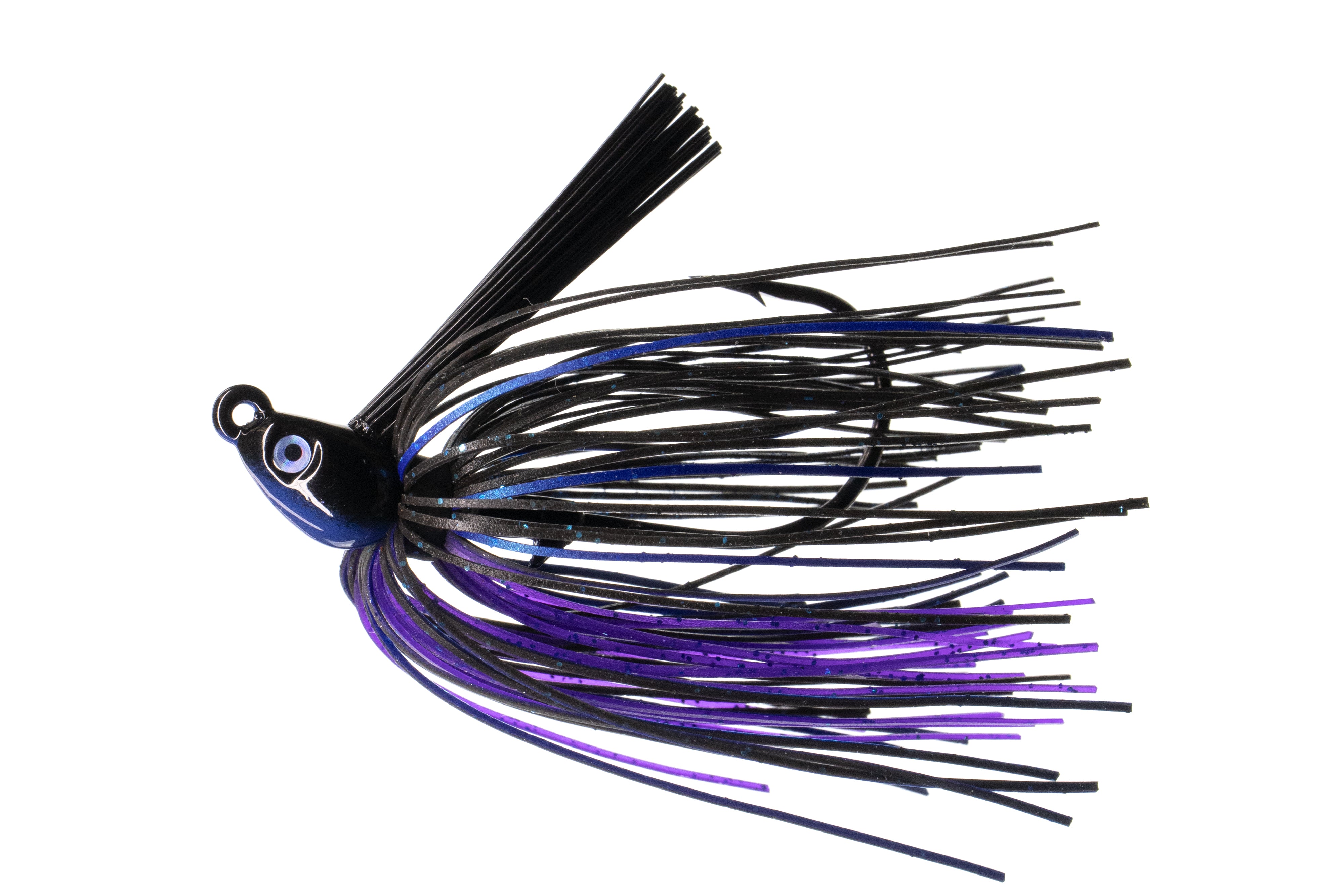 A power fishing staple with a bullet-shaped head, vertical line tie, and stout fiber weed guard designed to slice through vegetation and cover. It features a full, 50-strand high-definition skirt and a razor-sharp 5/0 VMC hook.